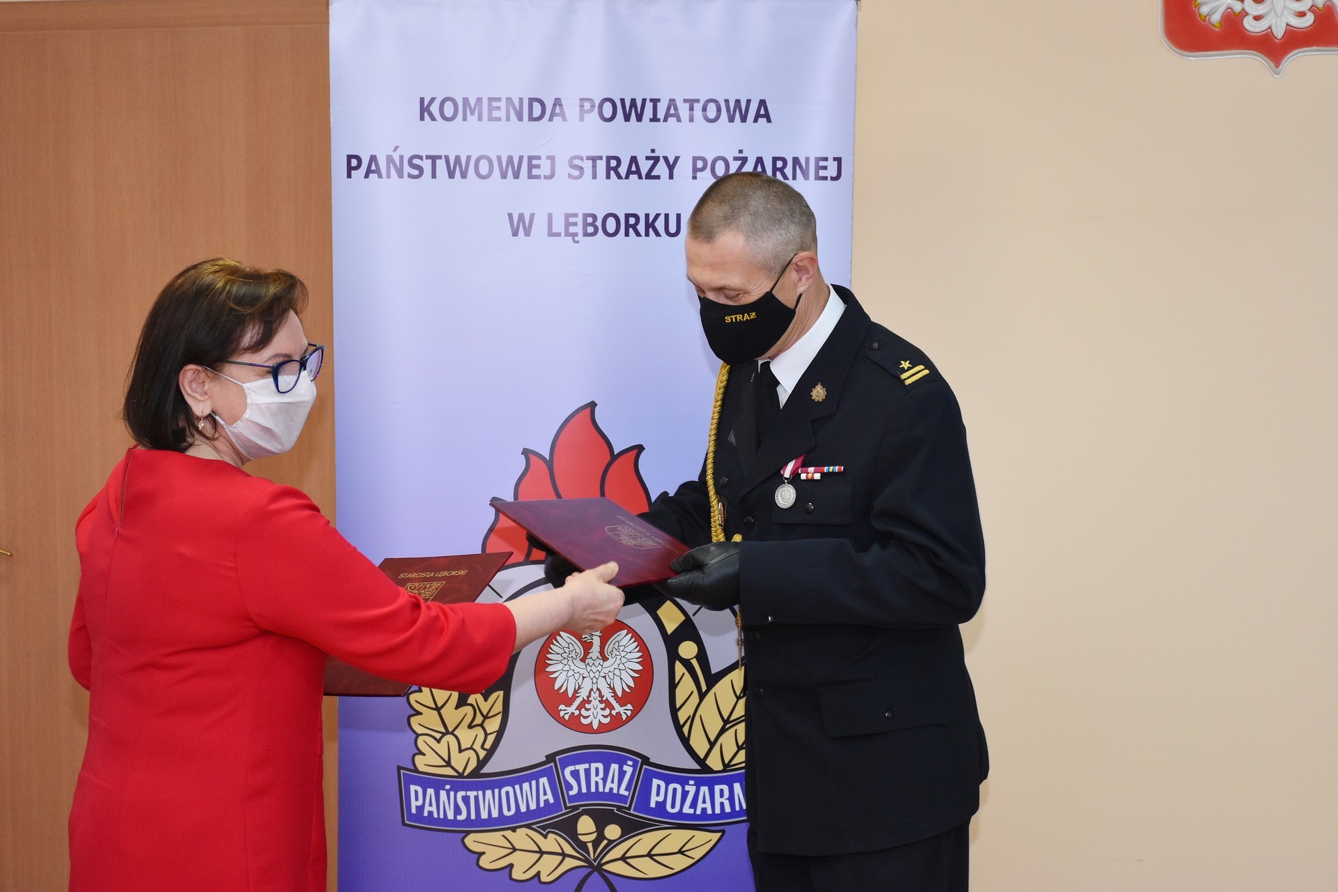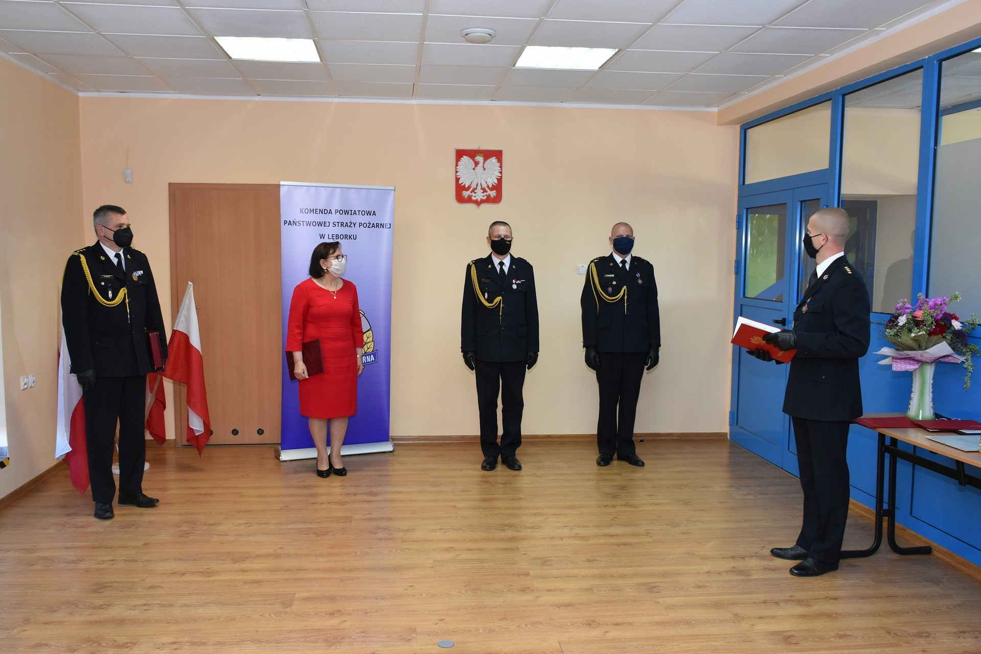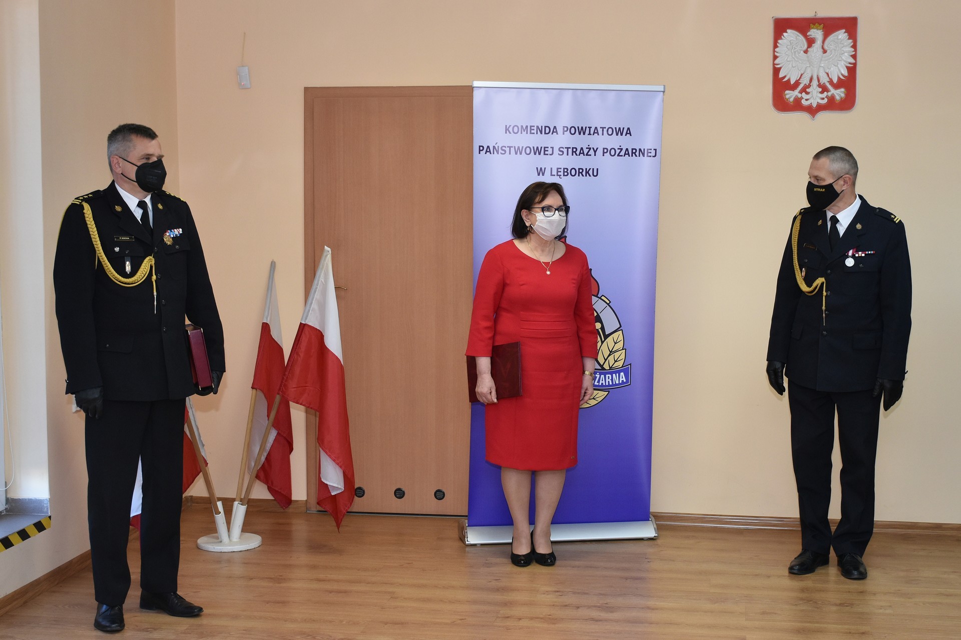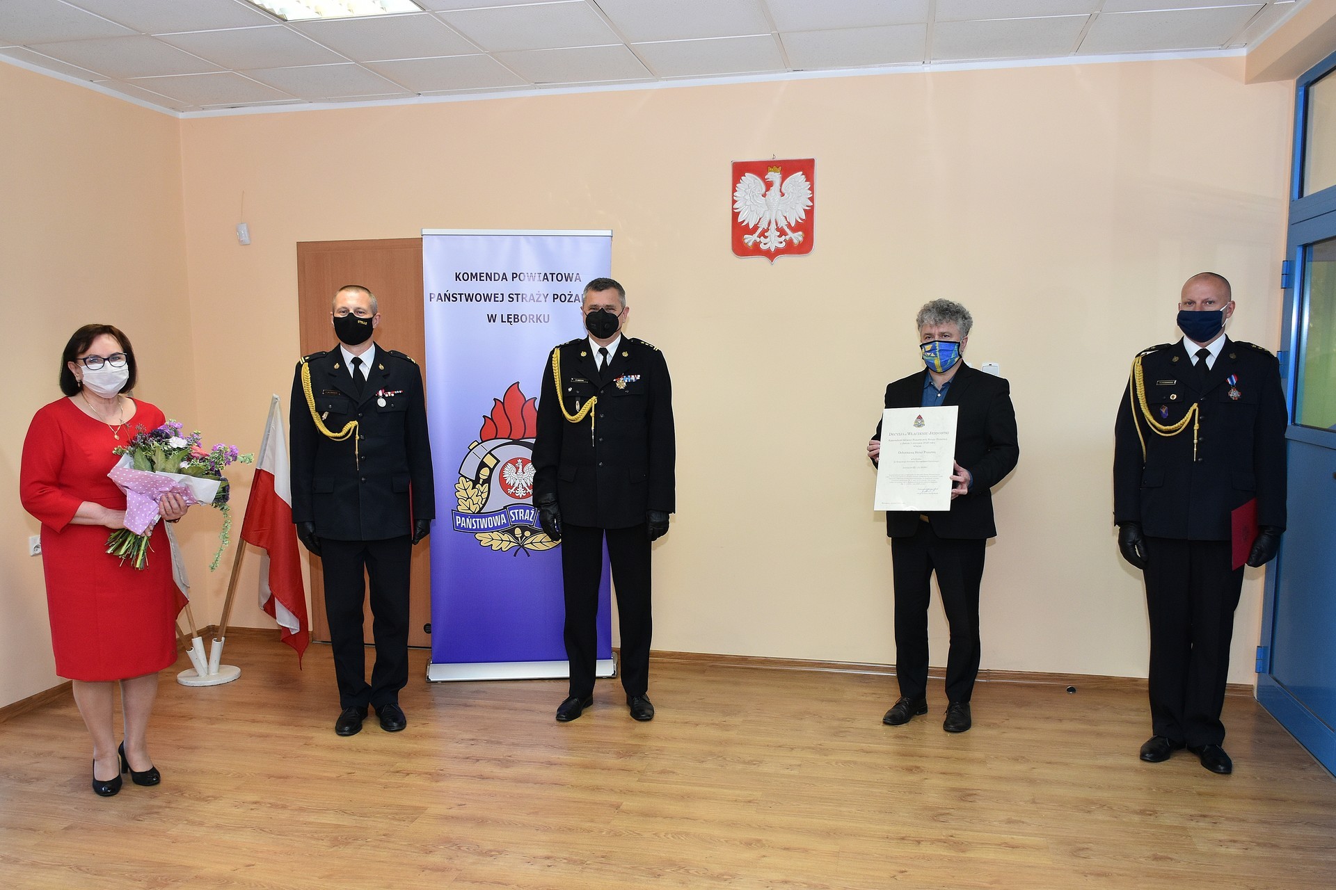 Akty odwołania i powołania lęborskim komendantom wręczył st. bryg. Piotr Socha, Komendant Wojewódzki Państwowej Straży Pożarnej w Gdańsku. Uroczystości w Komendzie Powiatowej Państwowej Straży Pożarnej odbyły się w kameralnym kilkuosobowym składzie osobowym ze względu na konieczność zachowania procedur bezpieczeństwa wynikających z zaleceń przeciwepidemicznych. Miejskie władze samorządowe reprezentował podczas uroczystości Witold Namyślak, Burmistrz Lęborka.