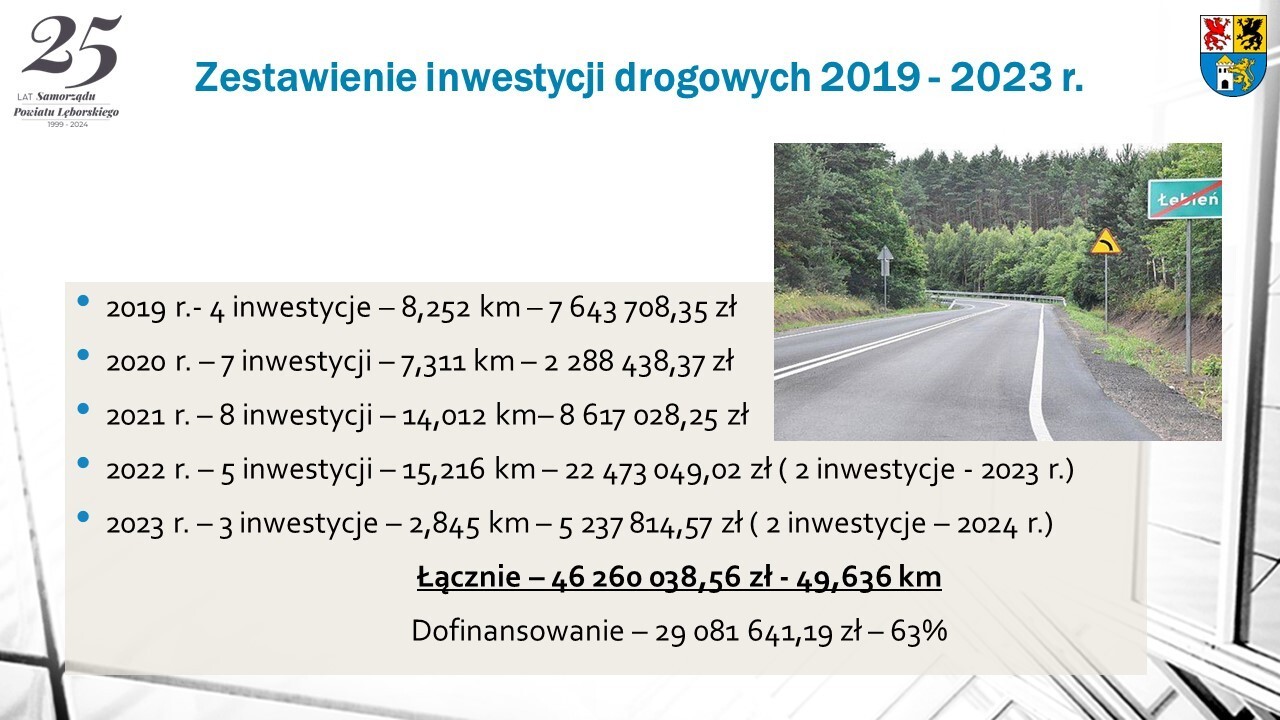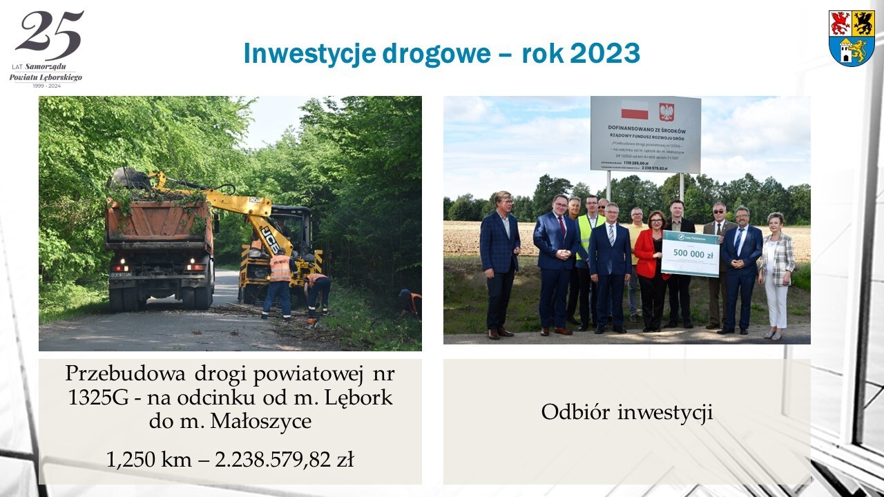 - przebudowa drogi od granicy Lęborka do Małoszyc.