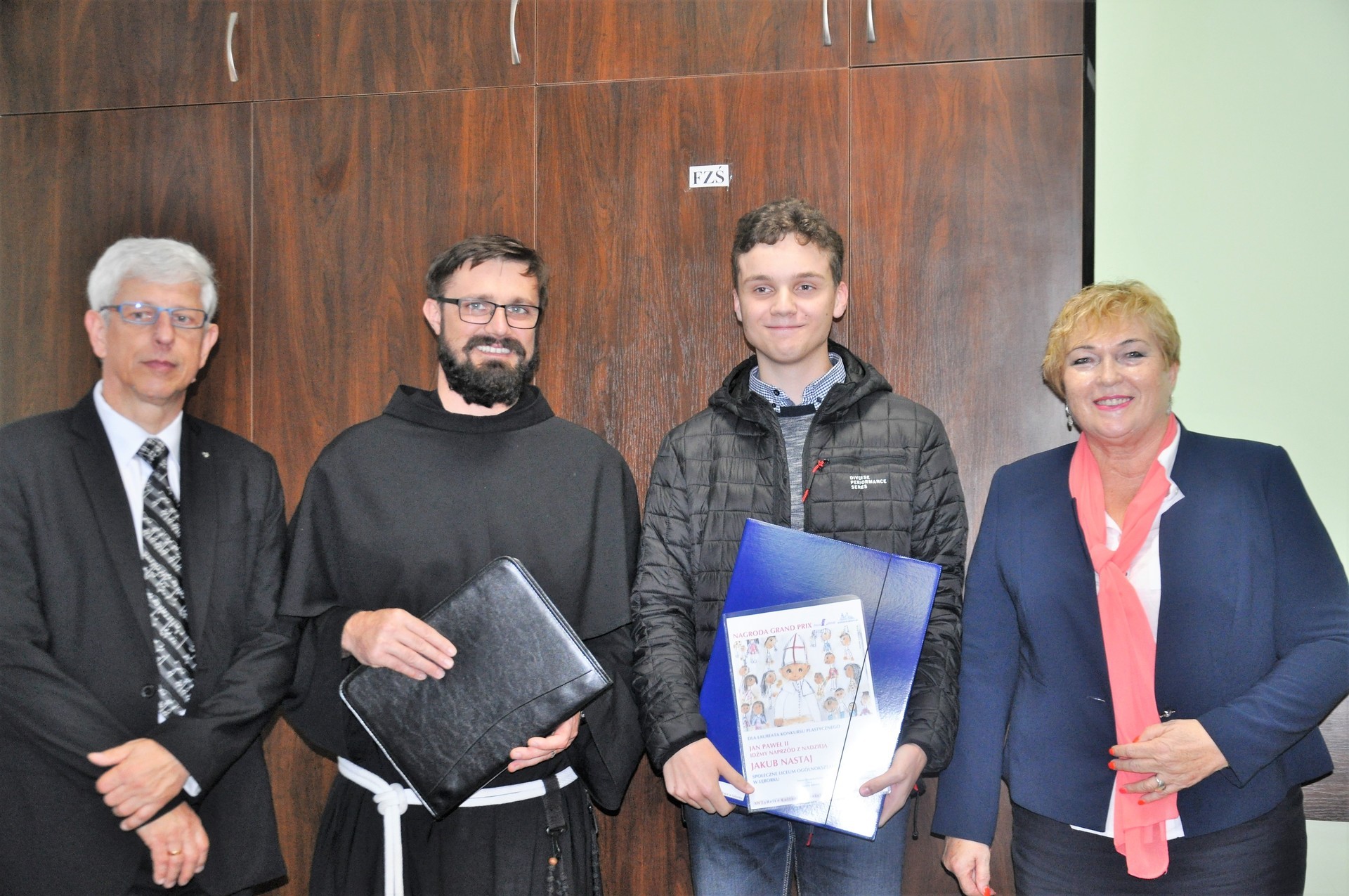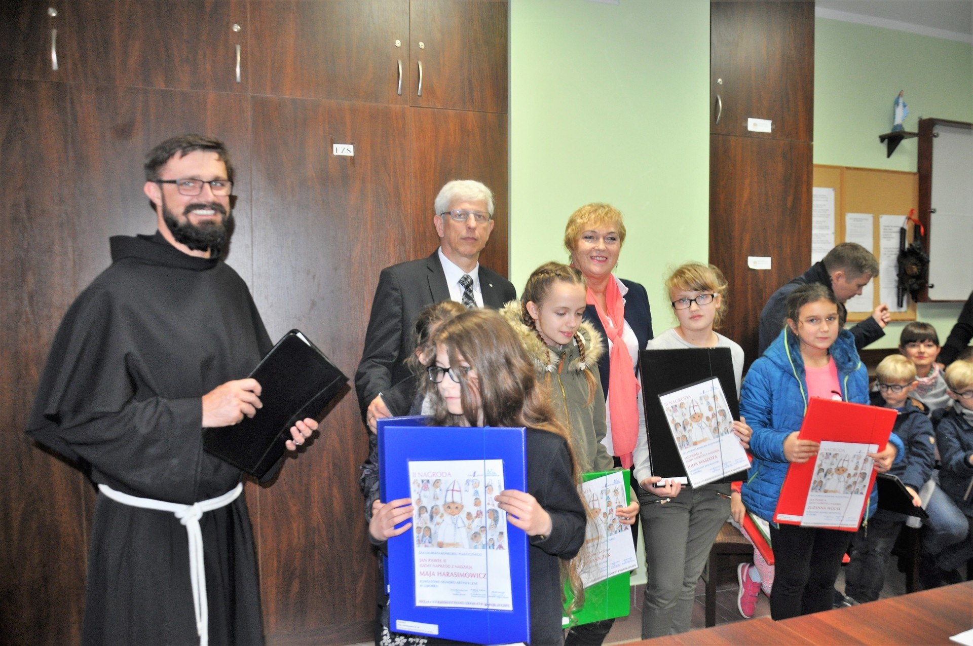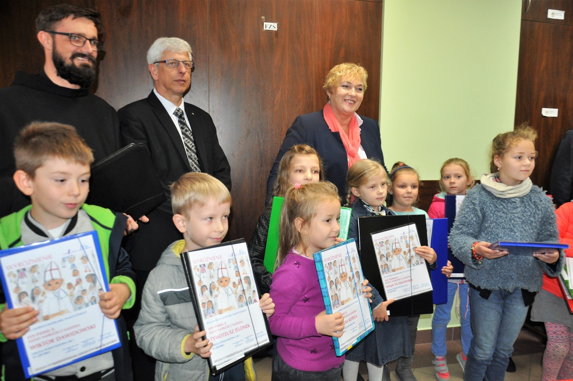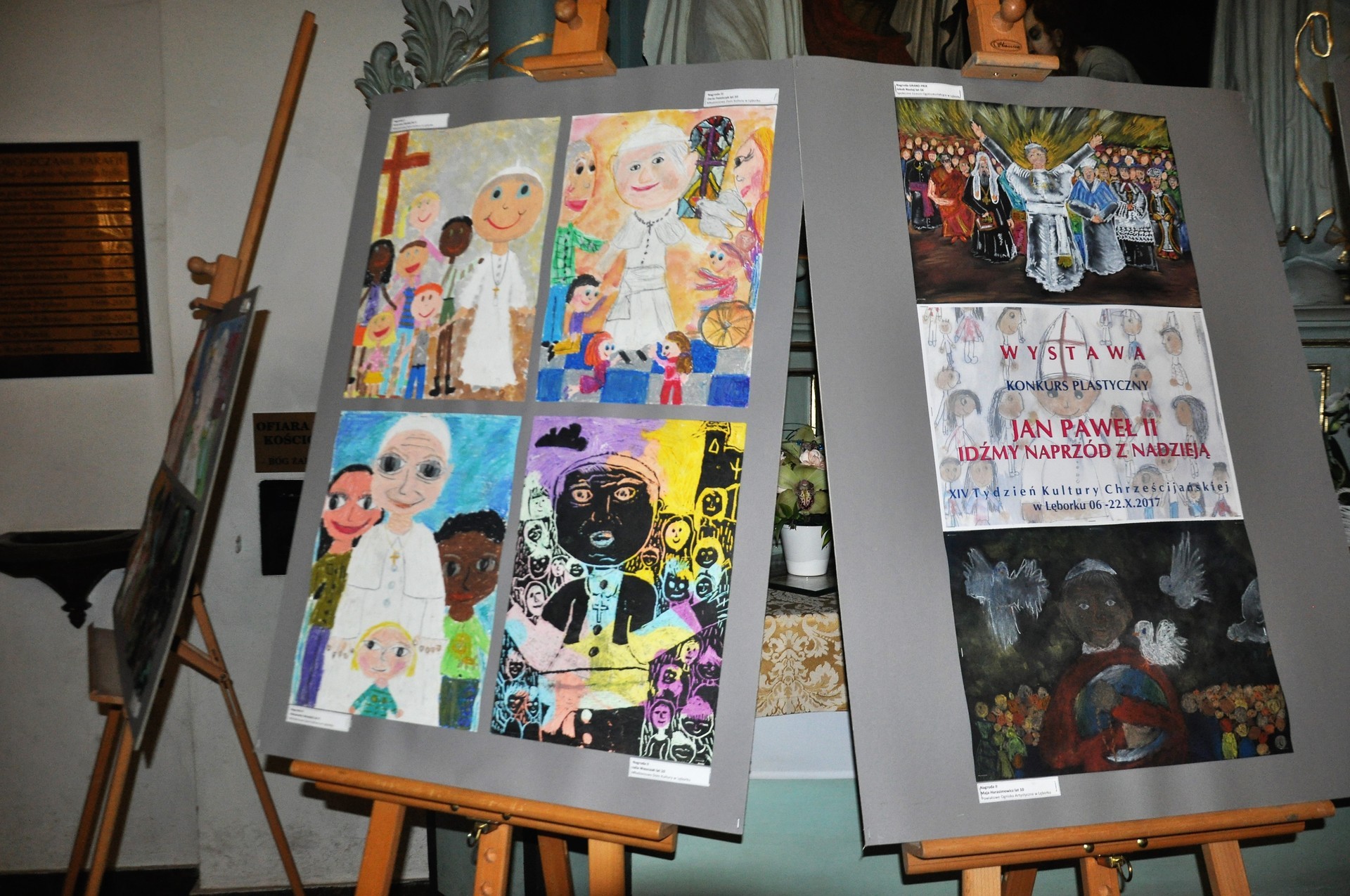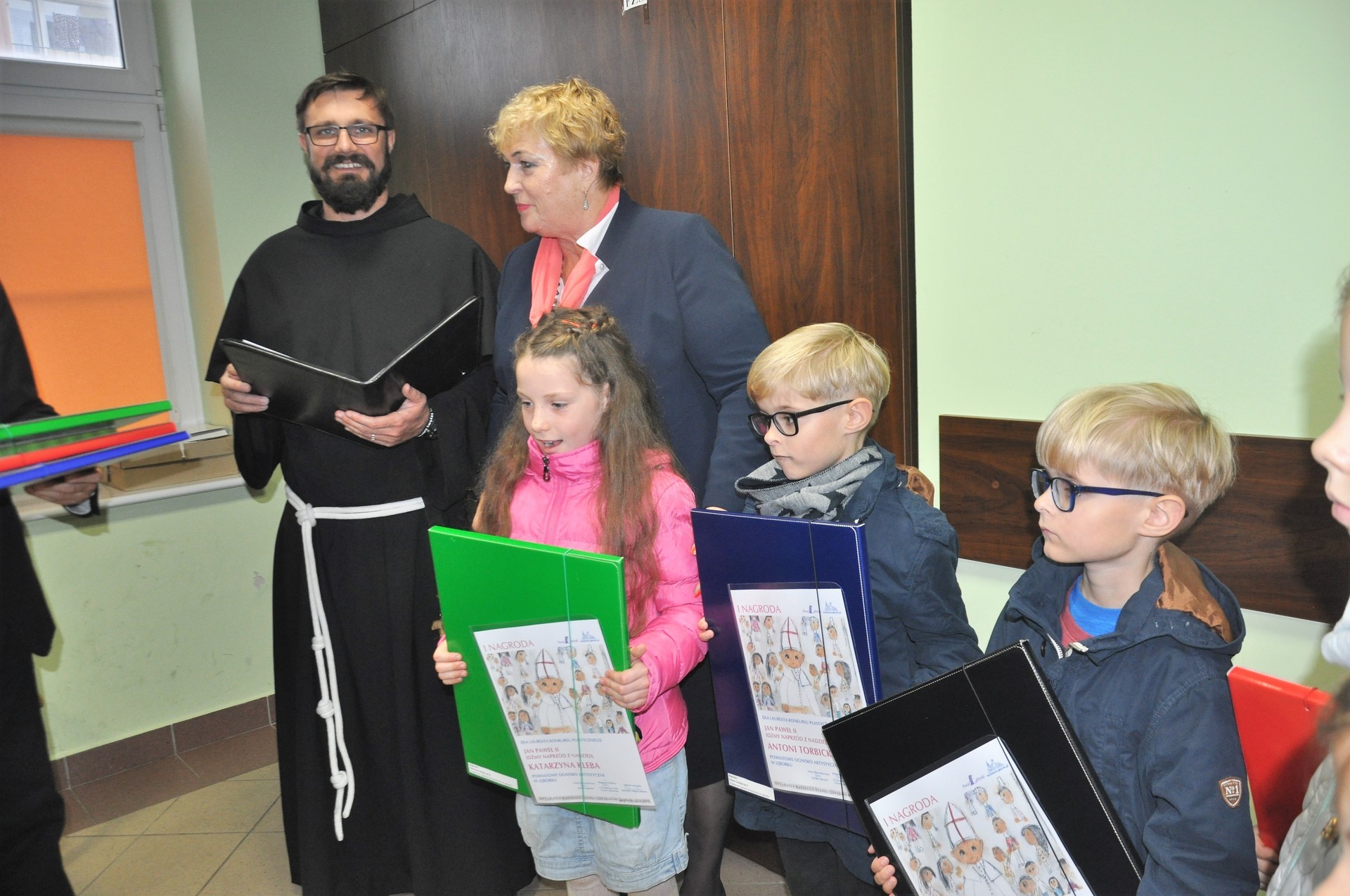 W minioną niedzielę, 22 października 2017 r., Wicestarosta Lęborski, Pani Elżbieta Godderis, wspólnie z o. Mateuszem Świętosławskim oraz Dyrektorem Powiatowego Ogniska Artystycznego w Lęborku wręczyli nagrody i wyróżnienia dzieciom i młodzieży, biorącym udział w konkursie plastycznym, organizowanym w ramach XIV Lęborskiego Tygodnia Kultury Chrześcijańskiej, pn. "Jan Paweł II - idźmy naprzód z nadzieją".