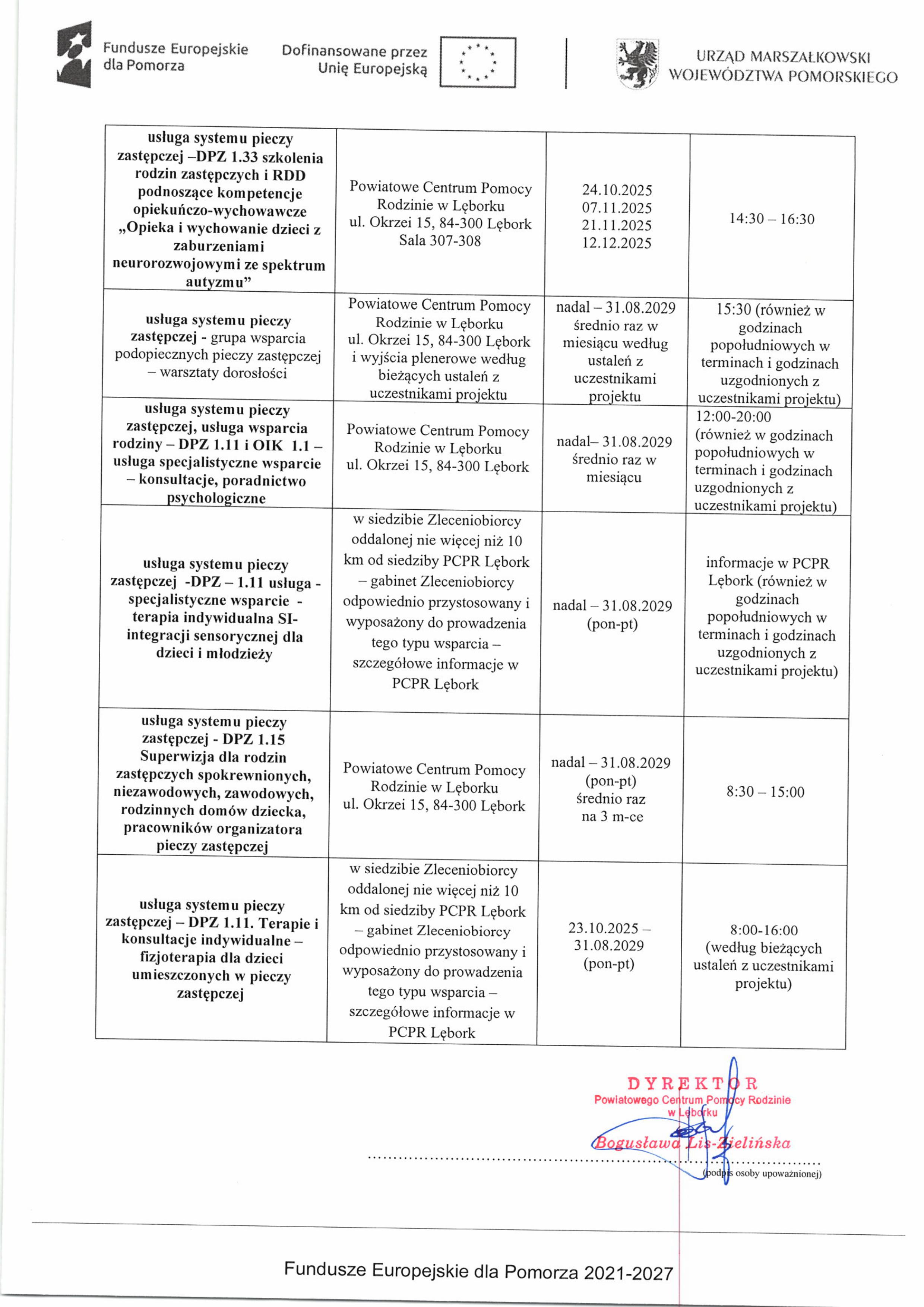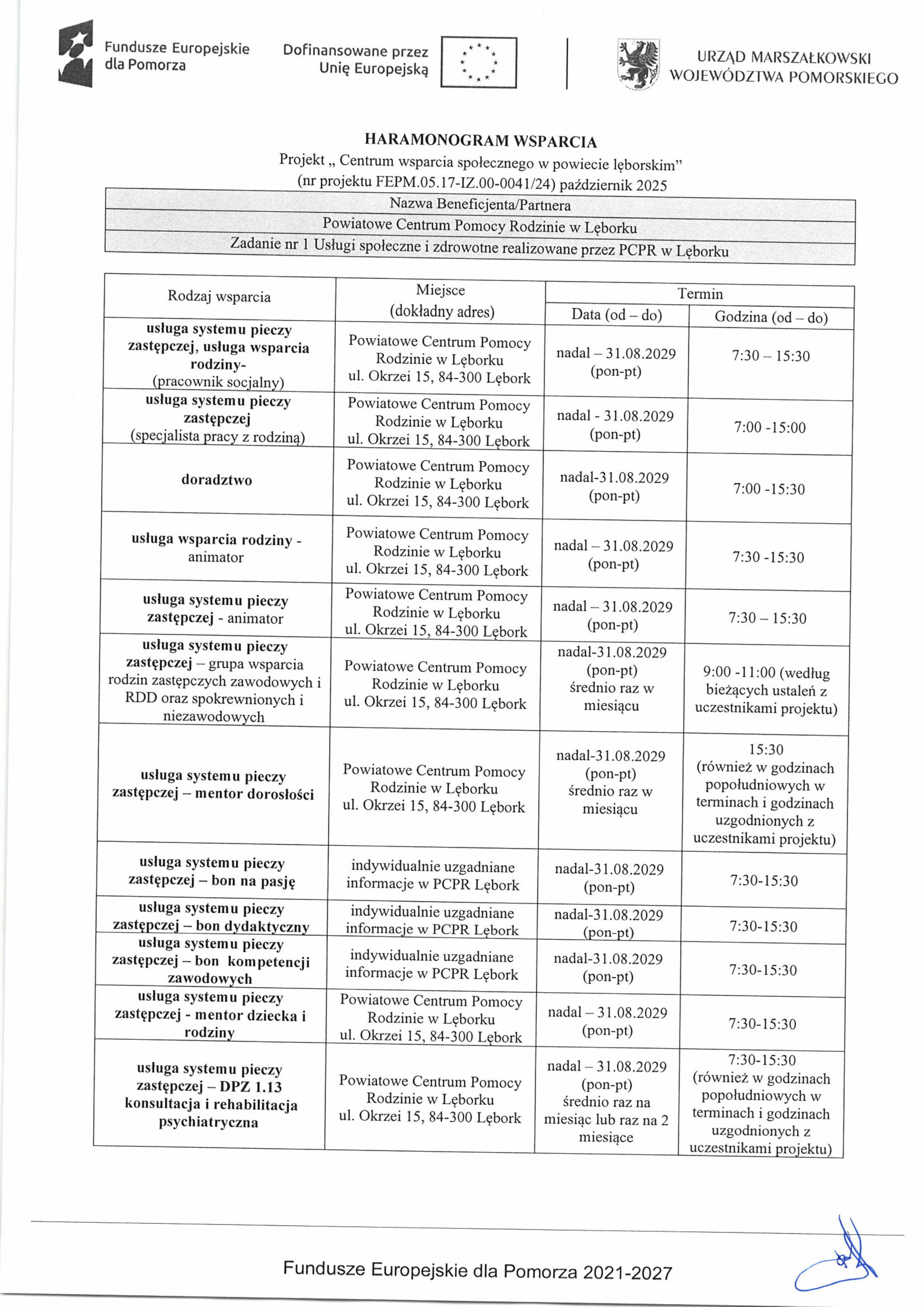 Powiat Lęborski publikuje aktualizację harmonogramu wsparcia realizowanego w ramach Projektu „Centrum wsparcia społecznego w powiecie lęborskim”.