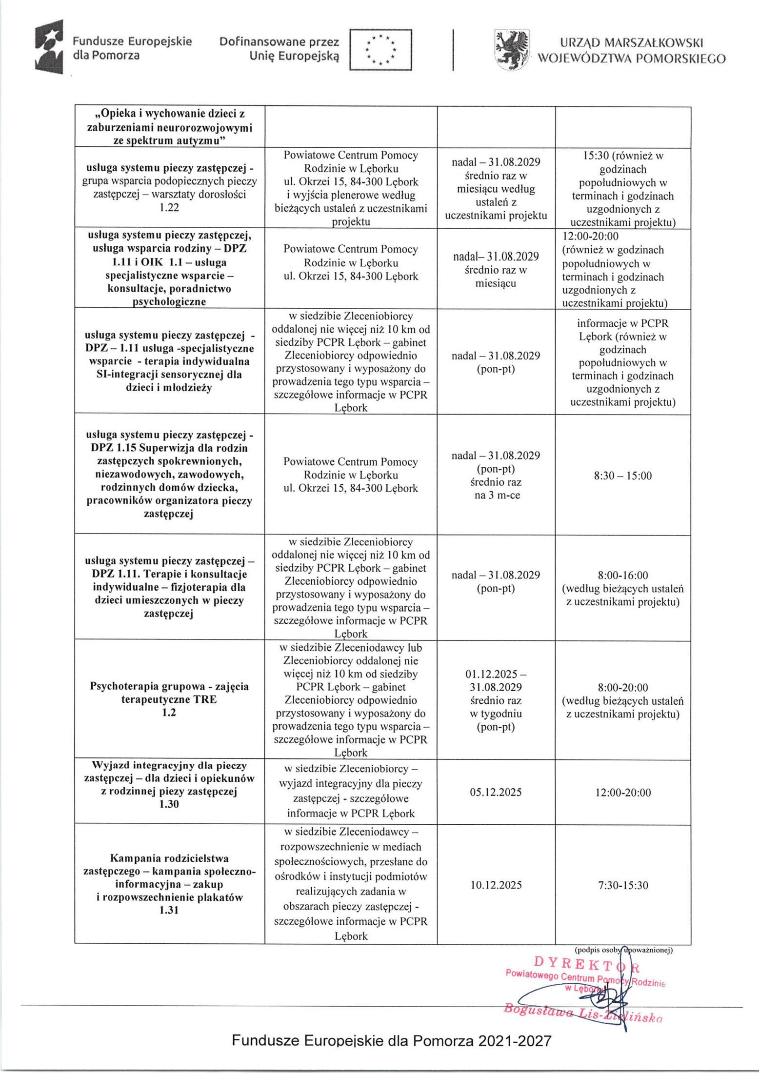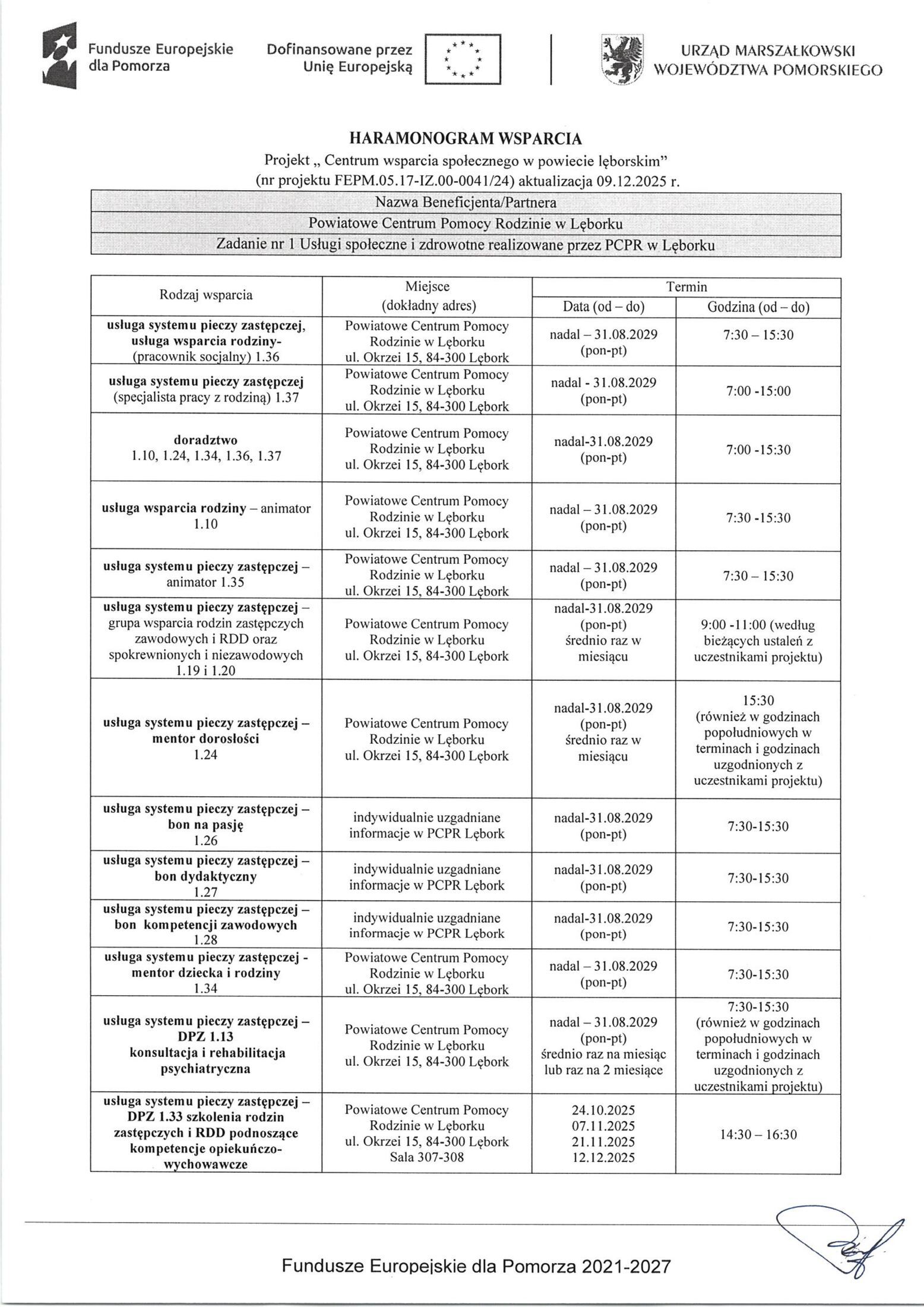 Powiat Lęborski publikuje aktualizację harmonogramu wsparcia udzielanego w ramach realizowanego Projektu „ Centrum wsparcia społecznego w powiecie lęborskim”.