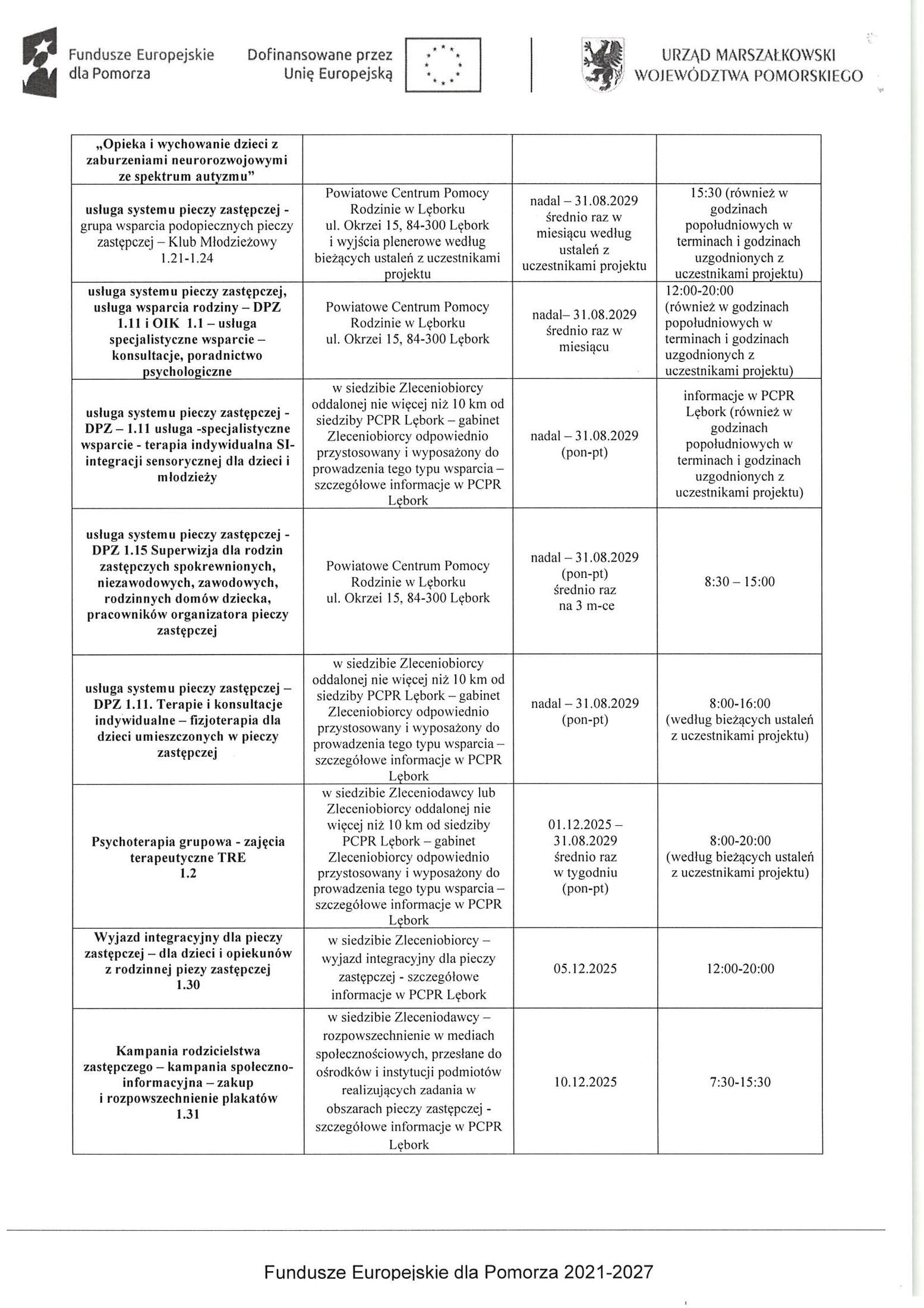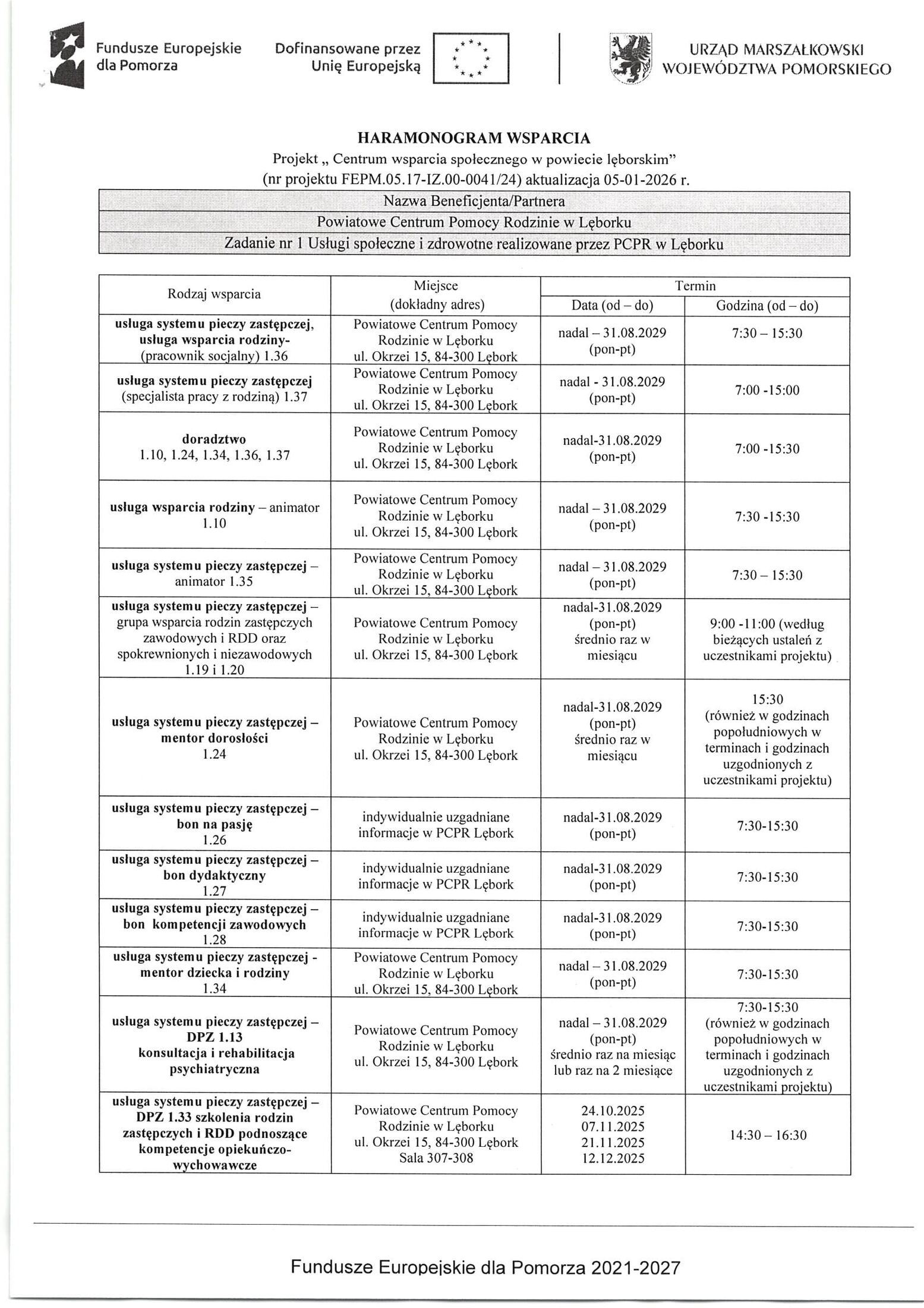 Powiat Lęborski publikuje aktualizację harmonogramu wsparcia udzielanego w ramach realizowanego Projektu „ Centrum wsparcia społecznego w powiecie lęborskim”.