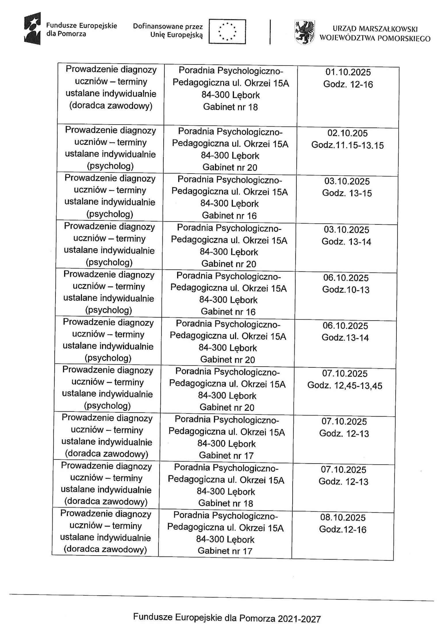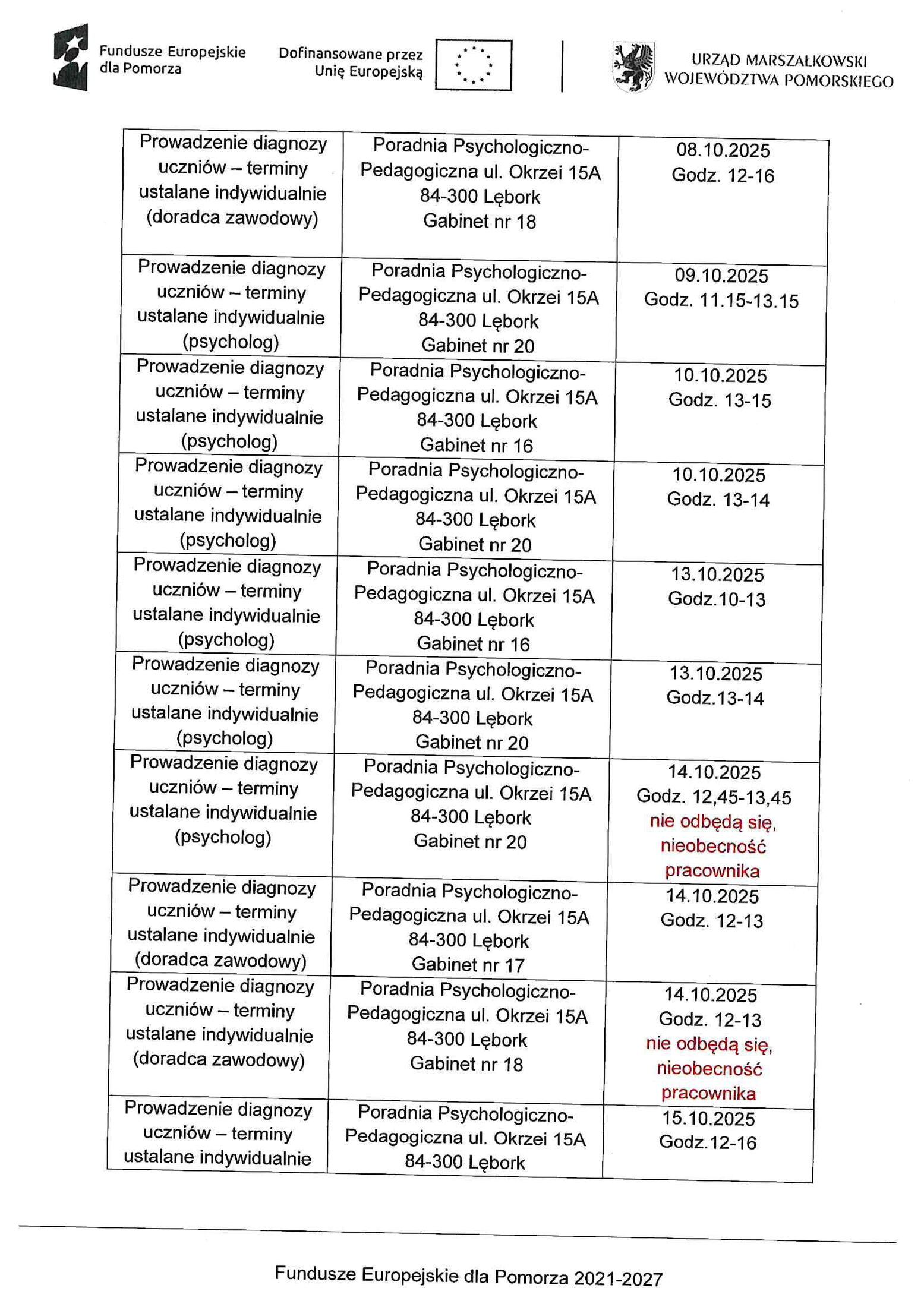 - Aktualizacja harmonogram wsparcia w ramach projektu "Zdolni z Pomorza - Powiat Lęborski - Etap II"