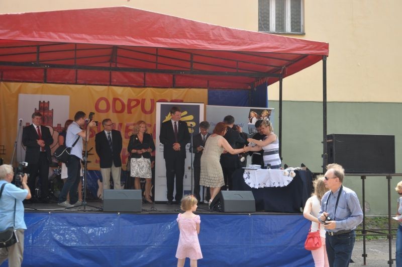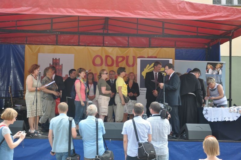 Pielgrzymi oficjalnie zostali przywitani podczas niedzielnych uroczystości, które rozpoczęły się przemarszem ulicami miasta w kierunku Sanktuarium św. Jakuba, uroczystą sumą odpustową, a następnie przejściem gości zaproszonych, uczestników pielgrzymki, turystów i mieszkańców Lęborka w kierunku sceny, aby tam dokonać oficjalnego otwarcia Pomorskiej Drogi św. Jakuba.