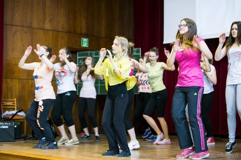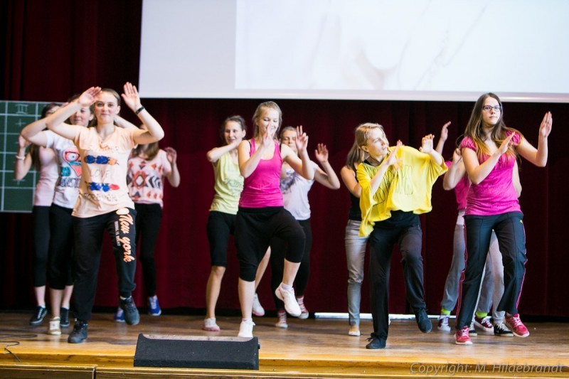 Choreografia ułożona została przez opiekunkę kółka panią Sylwię Smolarek i uczennice. Na scenie wystąpiły lęborskie licealistki w wesołych, kolorowych strojach prezentując układ zawierający elementy tańca i aerobiku. Głównym celem pokazu było zachęcenie rówieśników do ruchu i ćwiczeń. Jednak najważniejsze dla licealistek było przezwyciężenie własnego strachu i lęku oraz zaprezentowanie układu dającego im przyjemność i radość.