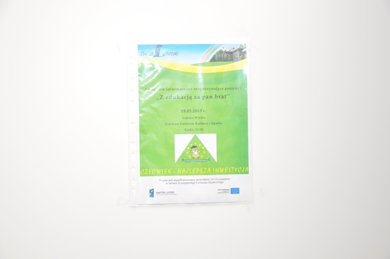 W dniu 19 marca 2013 r. w Gminnym Ośrodku Kultury i Sportu w Wicku zorganizowano spotkanie informacyjne rozpoczynające projekt ,,Z edukacją za pan brat''.
