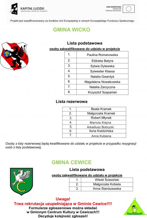 - Wyniki rekrutacji podstawowej w ramach projektu ,,Z edukacją za pan brat''