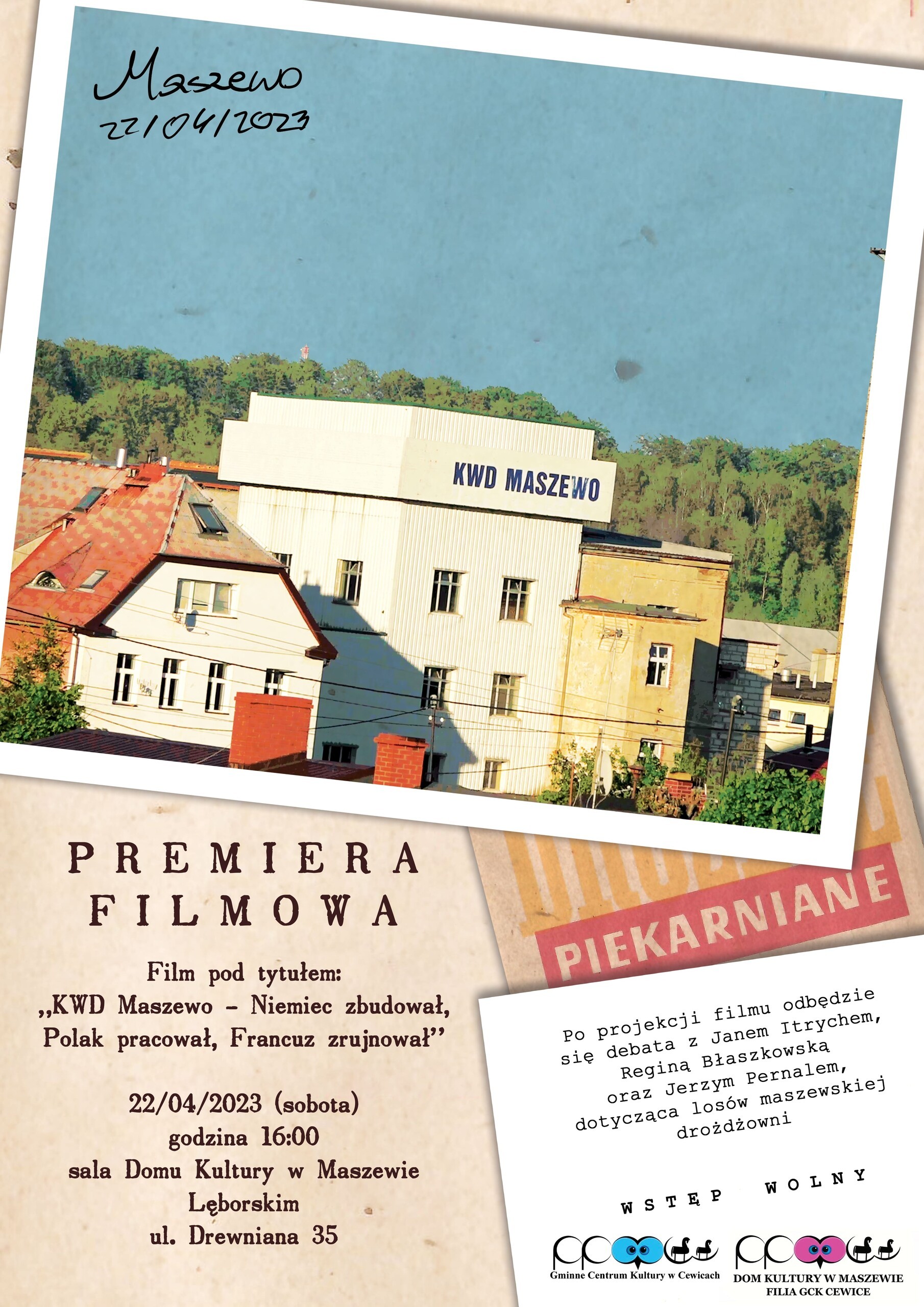 22 kwietnia o godzinie 16:00 w sali Domu Kultury w Maszewie Lęborskim odbędzie się premiera filmu dokumentalnego pt. “KWD Maszewo - Niemiec zbudował, Polak pracował, Francuz zrujnował”. Opowiada on o losach maszewskiej drożdżowni oczami jej pracowników od czasów powstania zakładu, aż do jego upadku. Autorami filmu są studenci dziennikarstwa z Uniwersytetu Gdańskiego, którzy nagrali ten film w ramach pracy dyplomowej.