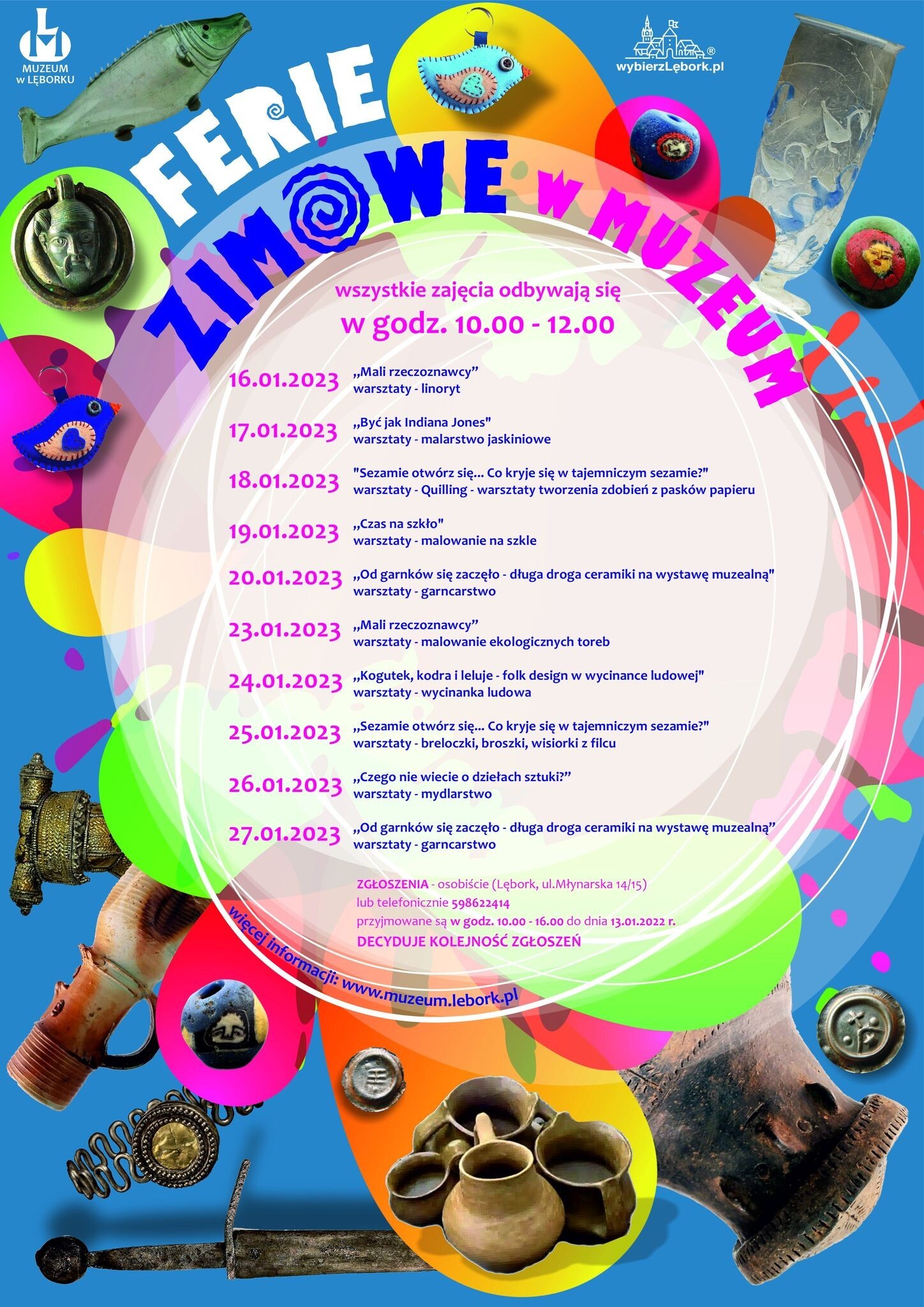 Oferta poniżej, zapisy do dnia 13.01.2023 r. telefonicznie 598622414 lub osobiście w siedzibie Muzeum, ul.Młynarska 14/15 w godz. 10.00 - 16.00