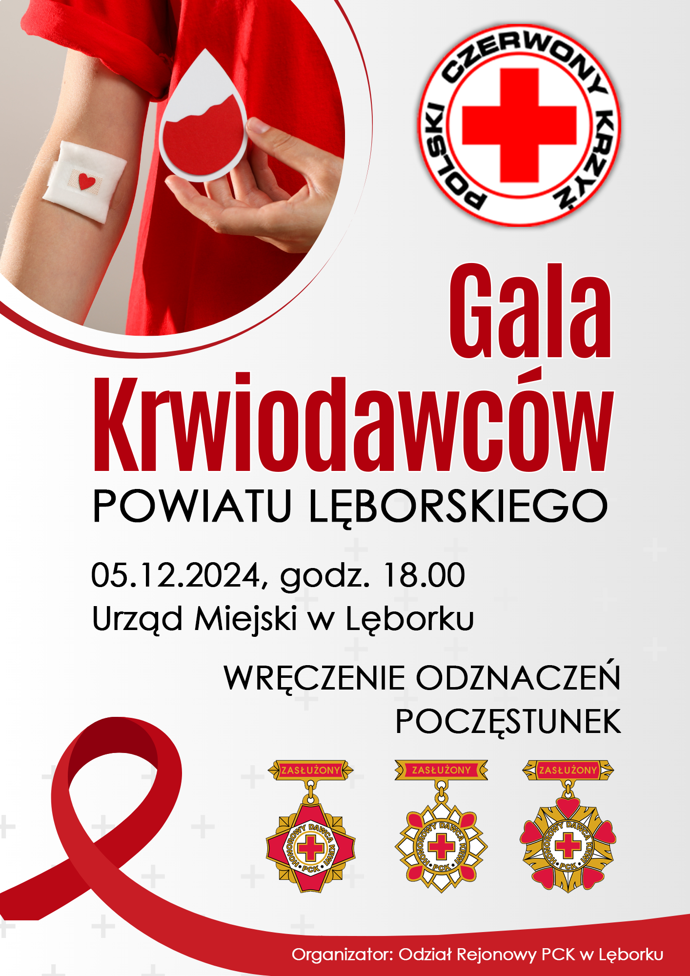 PCK Lębork zaprasza na Galę Krwiodawców Powiatu Lęborskiego.