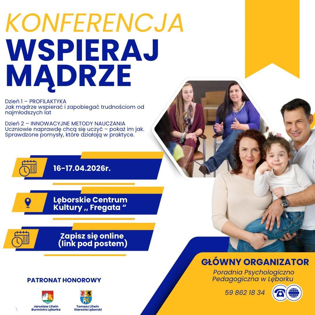 Poradnia Psychologiczno - Pedagogiczna w Lęborku zaprasza dyrektorów placówek oświatowych, nauczycieli, wychowawców, pracowników socjalnych, osoby pracujące z dzieckiem i rodziną do udziału w konferencji pt. „Wspieraj mądrze”.