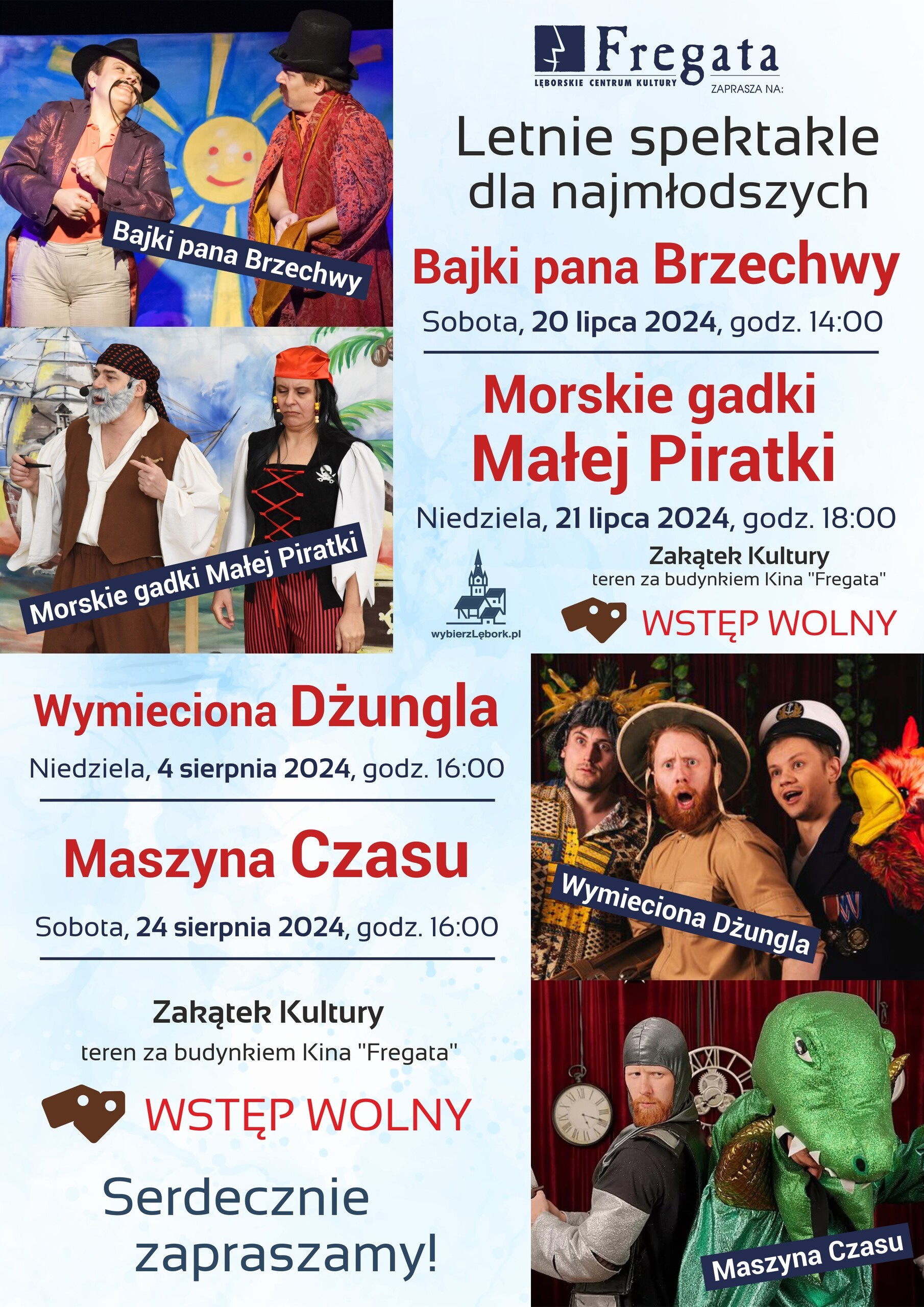 Lęborskie Centrum Kultury "Fregata" zaprasza na plenerowe spektakle teatralne dla najmłodszych widzów, które odbędą się w lipcu oraz sierpniu w Zakątku Kultury, czyli za budynkiem Kina "Fregata" przy ul. Gdańskiej 12 w Lęborku.