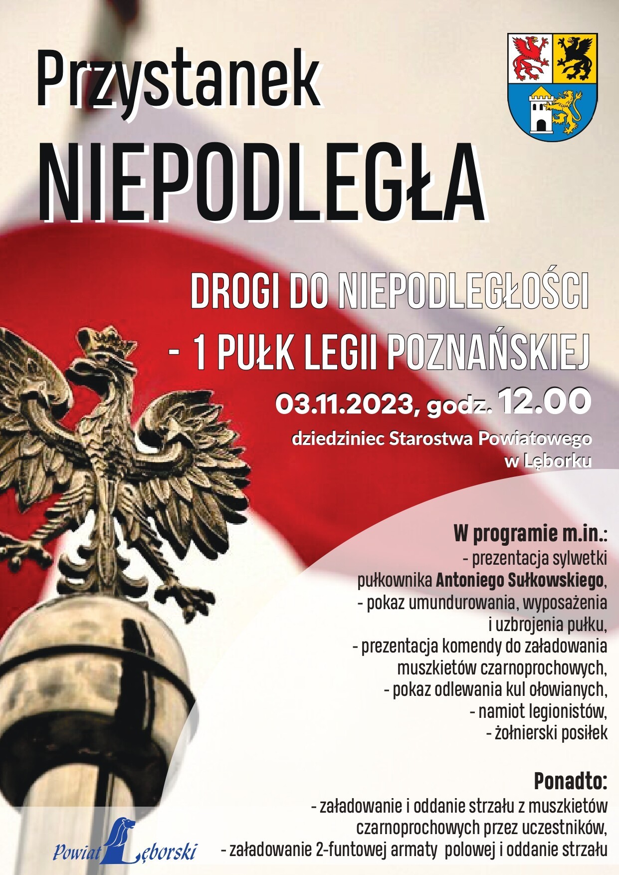 Już 3 listopada, a więc na tydzień przed oficjalnymi obchodami Narodowego Święta Niepodległości, na dziedzińcu lęborskiego starostwa rozgoszczą się odtwórcy Grupy Rekonstrukcji Historycznej „Nałęcz”. Podczas prezentacji pod nazwą „Drogi do niepodległości – 1 Pułk Legii Poznańskiej”, przygotowanej w ramach cyklicznego wydarzenia okolicznościowego Powiatu Lęborskiego - „Przystanek Niepodległa”, uczestnicy będą mogli bliżej poznać postać pułkownika Antoniego Sułkowskiego, jednego z najwybitniejszych w czasach nowożytnych dowódców polskich sił zbrojnych. Co prawda osoba płk. Sułkowskiego przeniesie nas w czasy o sto lat wcześniejsze od formalnej daty odzyskania niepodległości, jednak z historycznego punktu widzenia, to okres, w którym idee niepodległościowe rozkwitły w polskim społeczeństwie pod wpływem wizji odzyskania samodzielności państwowej u boku Napoleona. Pułk Antoniego Sułkowskiego, (później mianowanego do stopnia generała i funkcji naczelnego wodza wojsk polskich Księstwa Warszawskiego), brał udział w walkach kampanii 1806-1807 roku i oblężeniu Gdańska i Kołobrzegu.