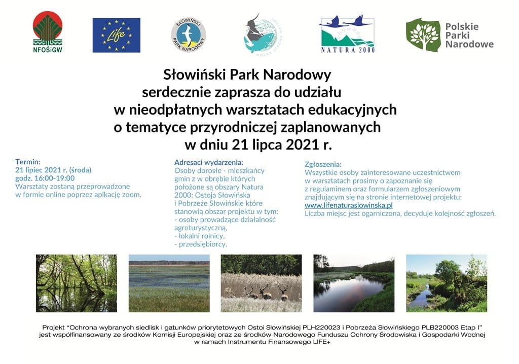 - Warsztaty edukacyjne ON-LINE pt.: „Ochrona wybranych siedlisk i gatunków priorytetowych Ostoi Słowińskiej i Pobrzeża Słowińskiego”.