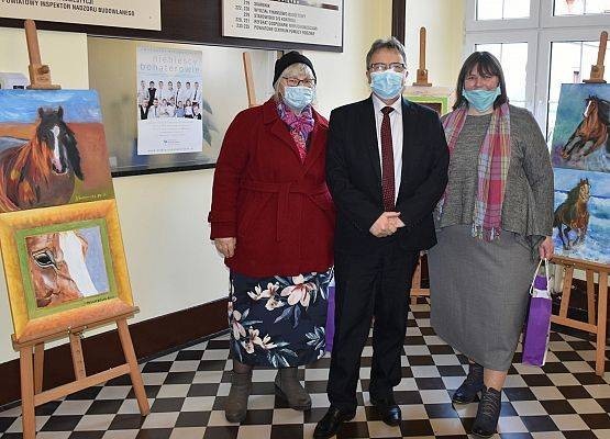 Podczas instalacji wystawy, z artystkami spotkał się Edmund Głombiewski, Wicestarosta Lęborski, który już podczas nowowiejskiego wernisażu był urzeczony twórczością obu pań. Wręczeniu drobnych upominków towarzyszył moment rozmowy o sztuce, tworzeniu, o pasjach.