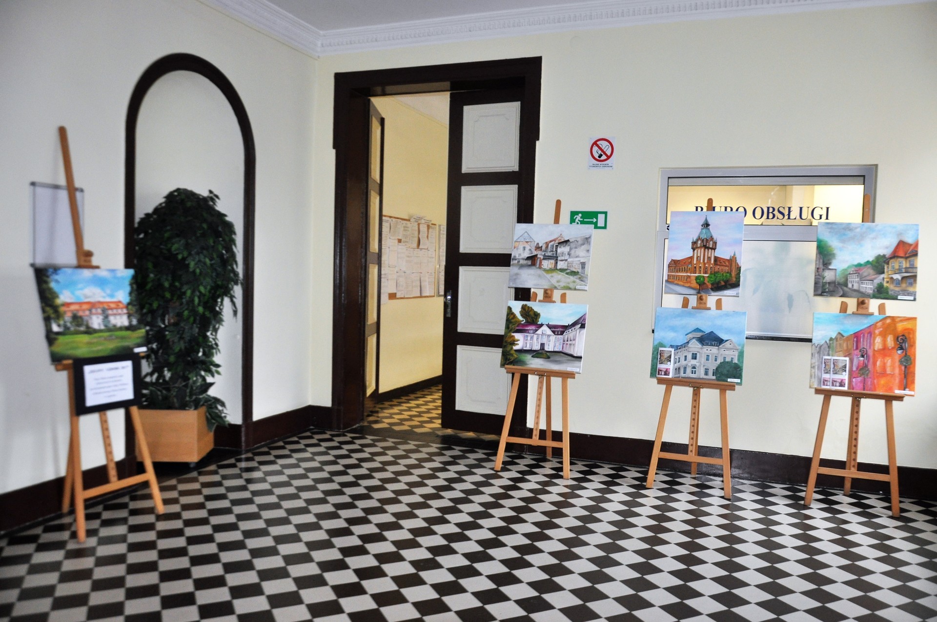 Od wczoraj zmienił się wystrój holu głównym Starostwa Powiatowego w Lęborku. Dzieje się to za sprawą nowej wystawy malarskiej w wykonaniu Małej ASP w Lęborku, działającej pod kierunkiem Pani Aliny Walkusz, Wicedyrektor Młodzieżowego Domu Kultury. Wystawa nosi tytuł "Zielony Lębork", a jej wykonawcami są uczestniczki tegorocznego eko-pleneru. Cieszymy się, że na kilku zobrazach znalazł się również budynek naszego urzędu. Gratulujemy tak fantastycznego poziomu artystycznego. A Państwa serdecznie zachęcamy do obejrzenia tych małych dzieł sztuki.